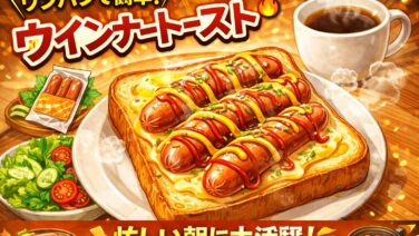 料理 ウィンナートーストが1人約100円!切ってのせるだけの超かんたん朝食レシピ ウィンナートーストの簡単レシピを紹介。材料費は1人約100円とコスパ抜群。ウィンナーを切ってのせるだけで作れる、忙しい朝にぴったりのトーストです。 2026.03.11 料理