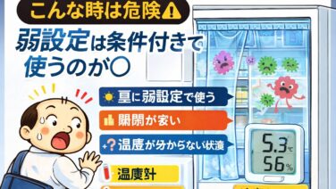 冷蔵庫の弱設定は安全?実測すると温度は8℃〜3℃で変動し、平均5〜6℃でした。食中毒菌との関係や安全な使い方、夏の注意点を分かりやすく解説します。
